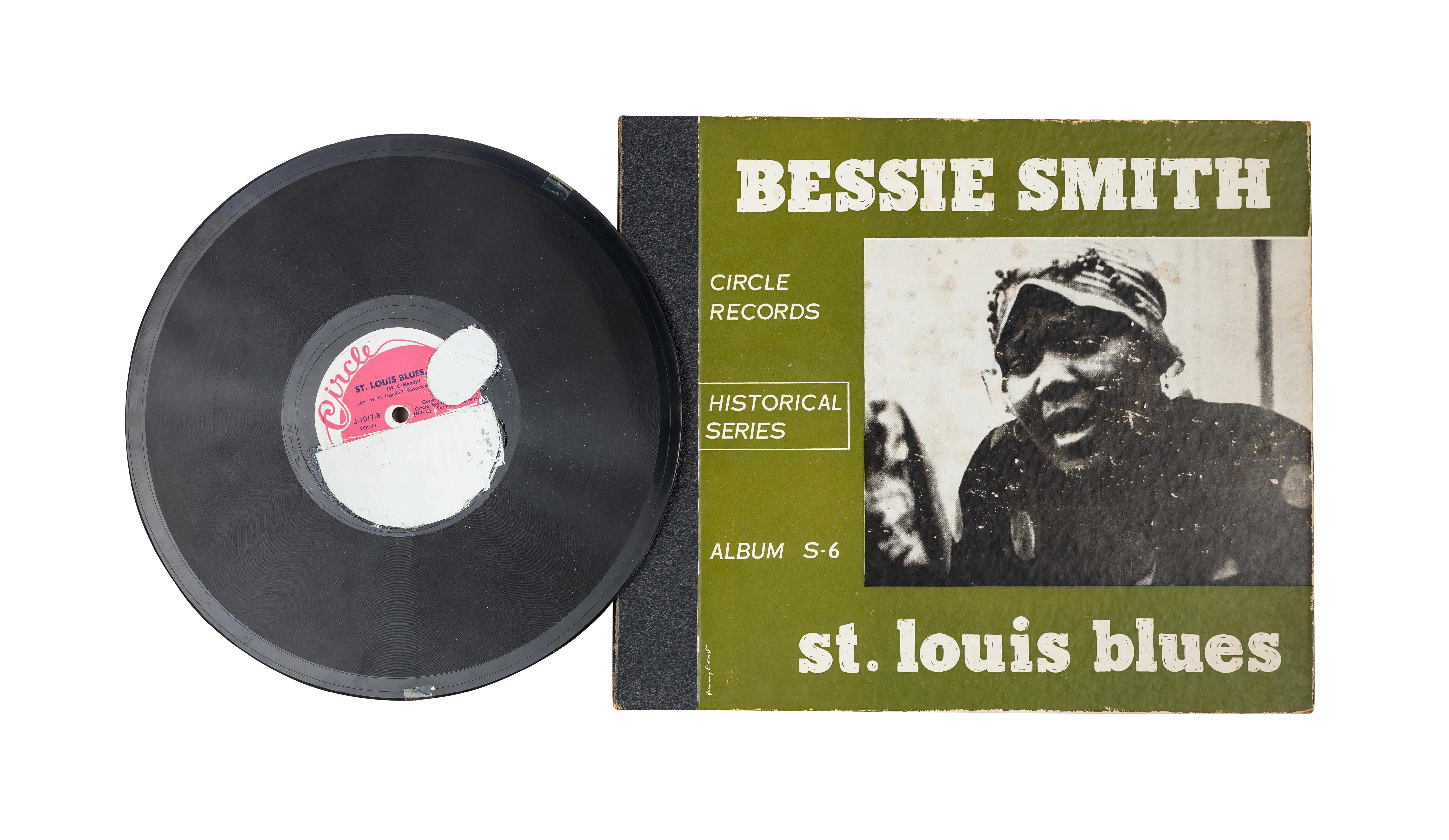 Die mühsam geflickte Platte St. Louis Blues ist Zeugnis der schweren Anfangsjahre der deutschen Musiklandschaft nach 1945 und der bewegten Anfangsgeschichte der ersten Tonträger. Bei diesem Musikobjekt der populären Kultur handelt es sich um einen Filmsoundtrack auf zwei Schellackschallplatten in einem Boxset aus dem Jahr 1947. Das Album der Künstlerin Bessie Smith (1894–1937) wurde von der New Yorker Firma Circle Records produziert und liegt mit einer abgegriffenen, bunt bedruckten Papphülle (Buch-Cover) im A4-Format vor, in der sich zwei Schellackplatten befinden, jeweils in einer eingeklebten Papierhülle. Der ursprüngliche Preis des Albums lässt sich nicht mehr feststellen; es befindet sich in der Sammlung Günter Boas im Lippmann+Rau-Musikarchiv in Eisenach.