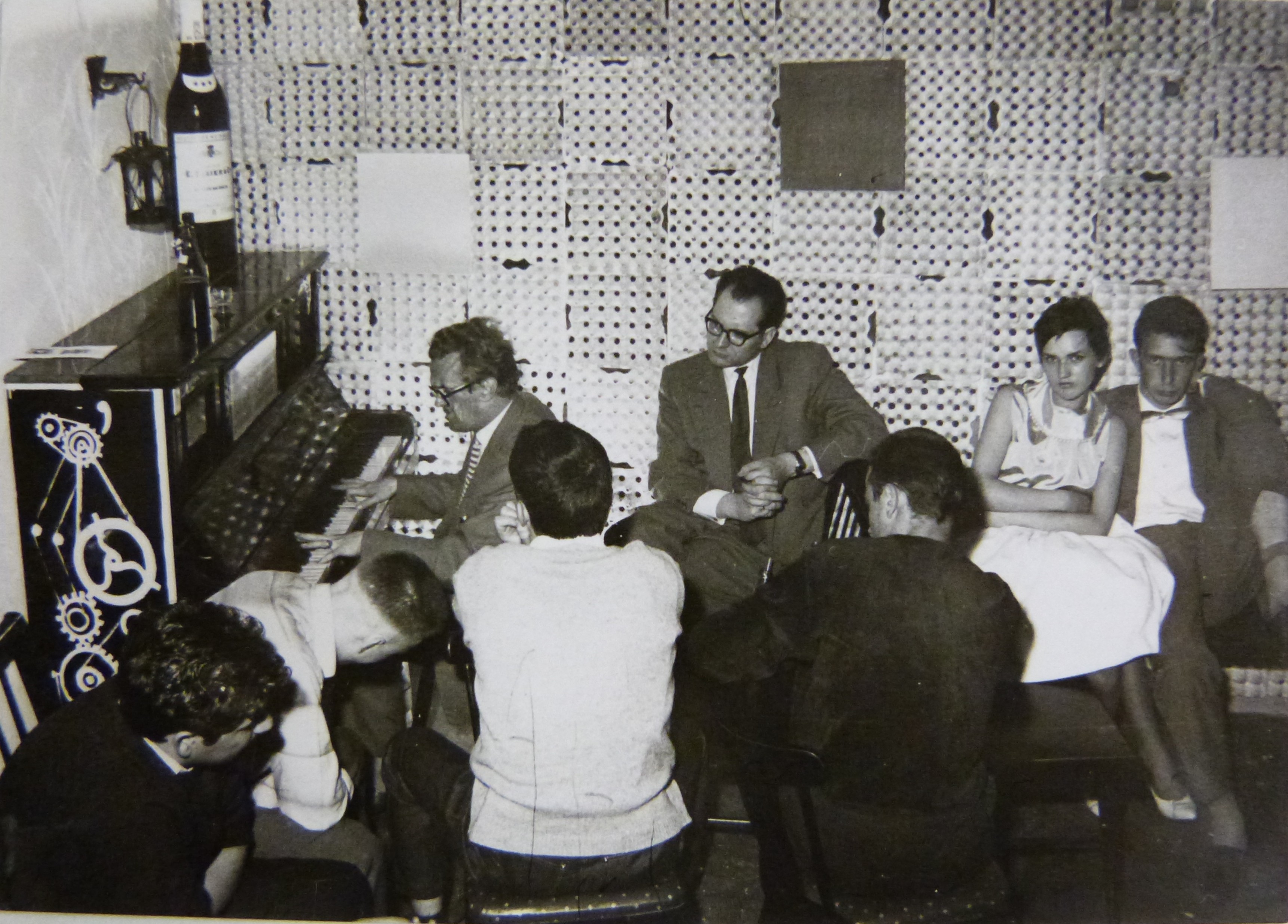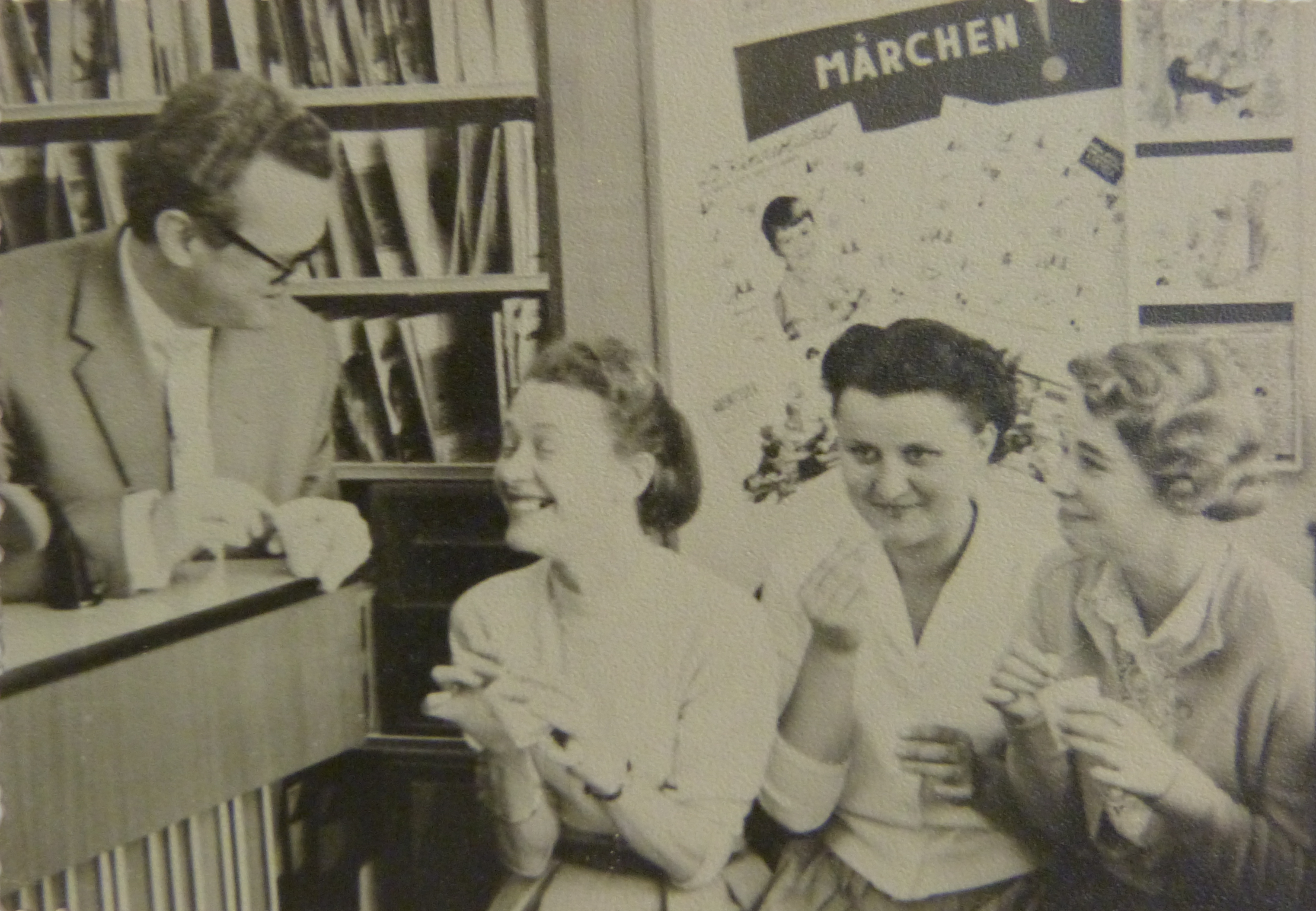 Abb. 2 a-b: Günter Boas bei einem Auftritt und mit Kundinnen im Geschäft ›Die Schallplatte‹. Lippmann+Rau-Musikarchiv, Sammlung Boas.