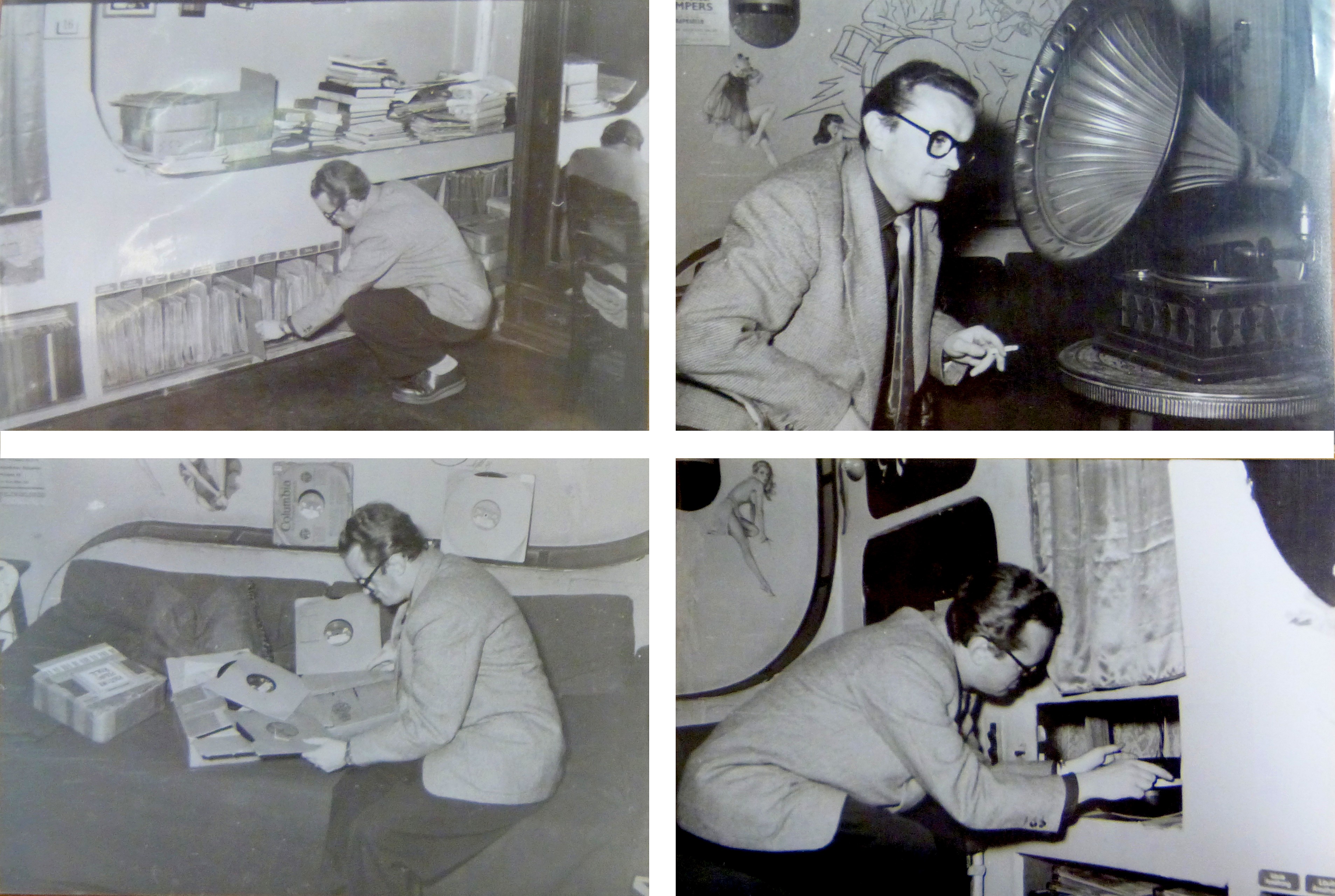 Abb. 4: ​Günter Boas beim Öffnen von Musiksendungen und beim Musikhören in seiner Frankfurter Wohnung. Lippmann+Rau-Musikarchiv, Sammlung Boas.