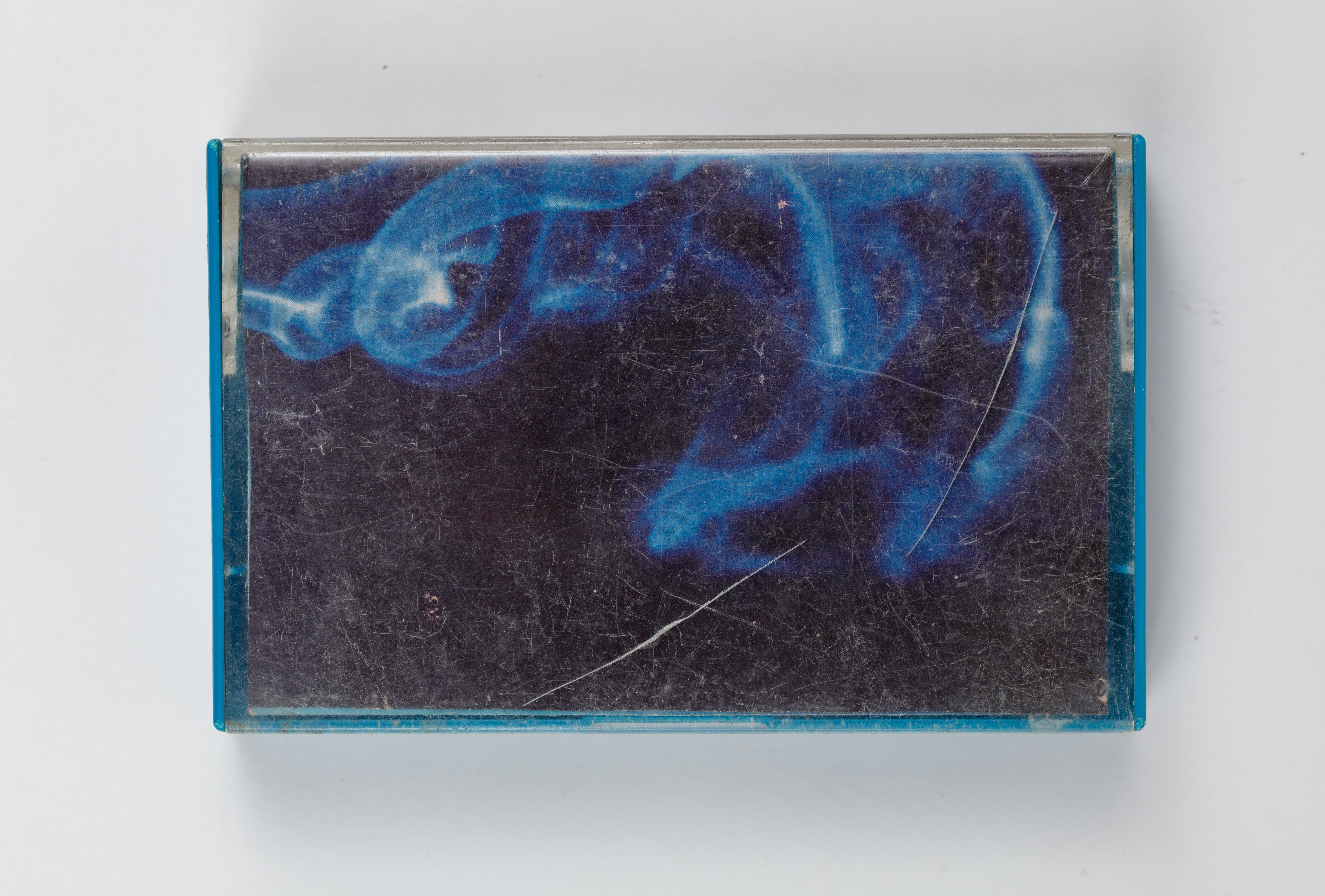 Das Kartoncover wurde von Hoffmann mit einer ausgeschnittenen Grafik überklebt (vgl. Abb. 1), dessen blauer Ton mit der restlichen Hülle korrespondiert. In die Spalten im Innenteil sind verschiedene Namen von Bands und Künstler*innen notiert; die Schrift ist eher unsauber (vgl. Abb. 1). Auf Seite A ist also scheinbar ein Songmix aus den 1970er-Jahren enthalten, was das Band zu einem Mixtape macht. Auch auf Seite B sind, wie oben dargelegt, verschiedene Künstler*innen vertreten: die 1979 gegründete Post-Punk-Band Romeo Void, die ab 1965 aktive Rockband Grateful Dead und der Solo-Künstler Elton John. Das Mixtape ist damit scheinbar eher rockig, mit einem Schwerpunkt auf englischsprachiger Musik, ausgerichtet, und lässt sich aufgrund der Musik auf die frühen 1980er-Jahre datieren. Das Cover weist an der Stelle, an der es in die Hülle eingelegt wird, erhebliche Knickspuren auf, die Beschriftung ist knapp. Insgesamt wirkt das Objekt, als wäre es oft benutzt worden, was der üblichen Gebrauchsweise der Musikkassette als häufig mitgeführtem Tonträger entspricht. Über die Klangqualität kann keine Aussage getroffen werden. Die Kassette wurde, wie alle Tonträger im Rahmen dieser Forschung, aus konservatorischen Gründen nicht abgespielt.