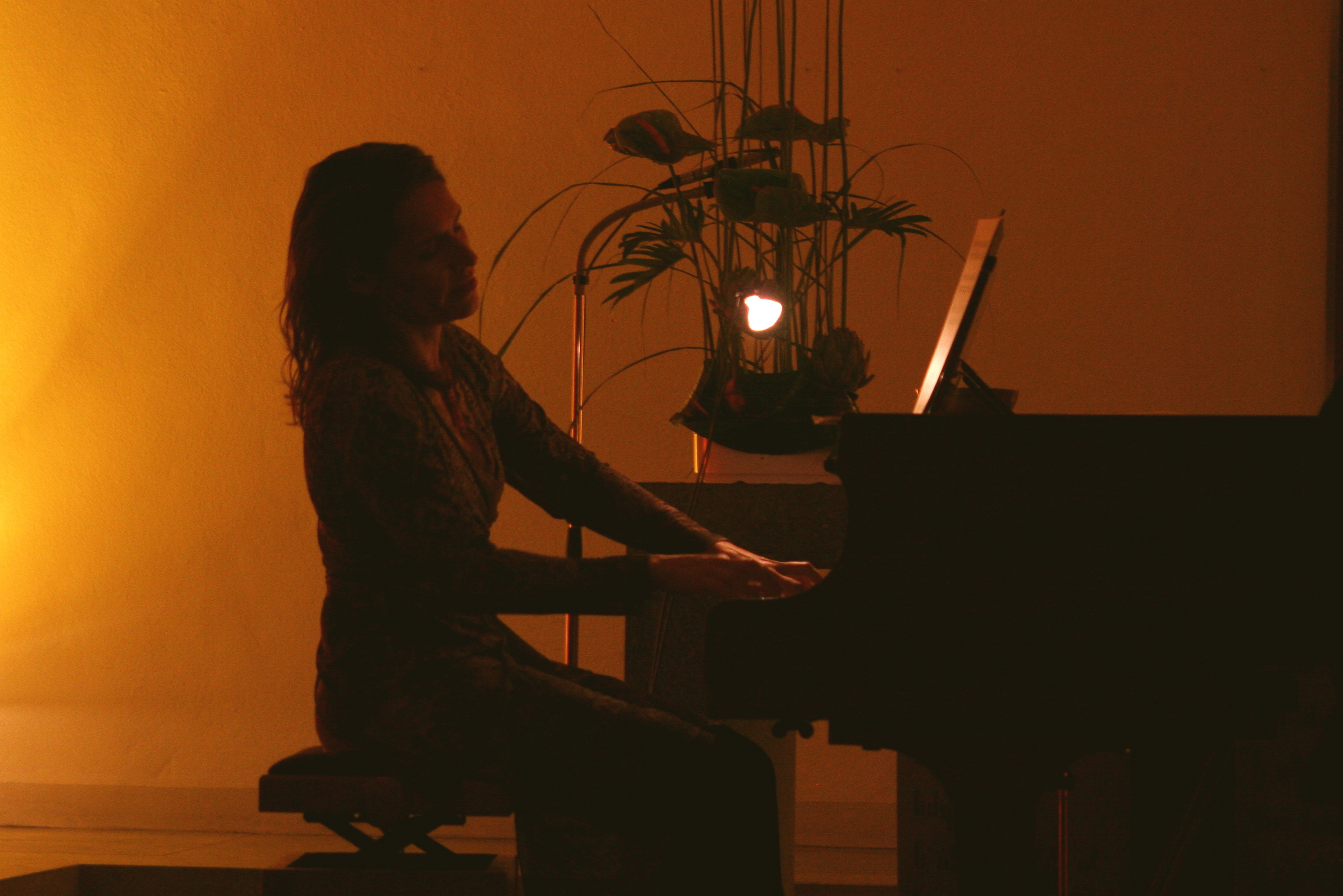 Abb. 2: Brigitte Angerhausen am Flügel. Brigitte Angerhausen.