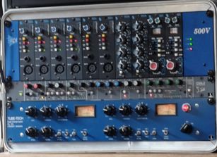 [I]ch [habe] mir eine Lunchbox gekauft mit Einschüben, so wurde ich dann irgendwo der mobile freiberufliche Toningenieur, der mit seinem Equipment entweder zu den Musikern und ihrer Produktionsstätten nach Hause gereist ist, [da ] habe ich dann so ein kleines eigenes mobiles Equipment aufgebaut, das habe ich auch einige Jahre mobil betrieben und irgendwann habe ich mir dann so ein Setup zusammengebaut im Zusammenhang mit dem Mischpult und eben einer Workstation[…] Und ich kann an das 12-Kanal-Pult noch ein weiteres 24-Kanal-Pult anschließen, ich subsumiere so einiges in der Workstation und führe das dann analog raus und habe dann eben noch analoge externe Bearbeitung in Form von Röhrenkompression oder externer Filter und alles läuft in die analoge die Endsumme und die dann wieder zurück in die Workstation.